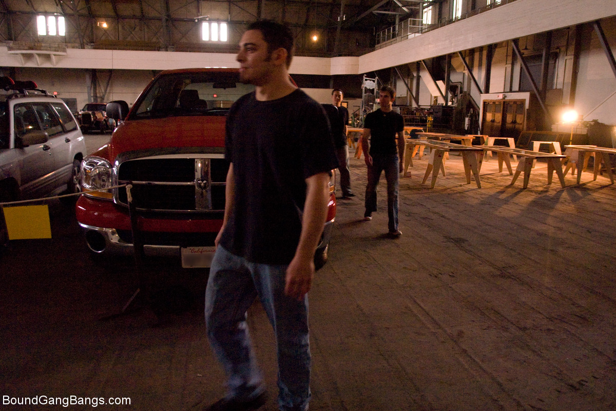 आंखों पर पट्टी बांधी हुई एमआईएलएफ राजकुमारी डोना डोलोर गेंद गैग के साथ बीडीएसएम प्रशंसकों से घिरी हुई - गैलरी जानकारी