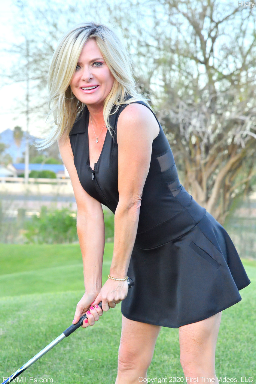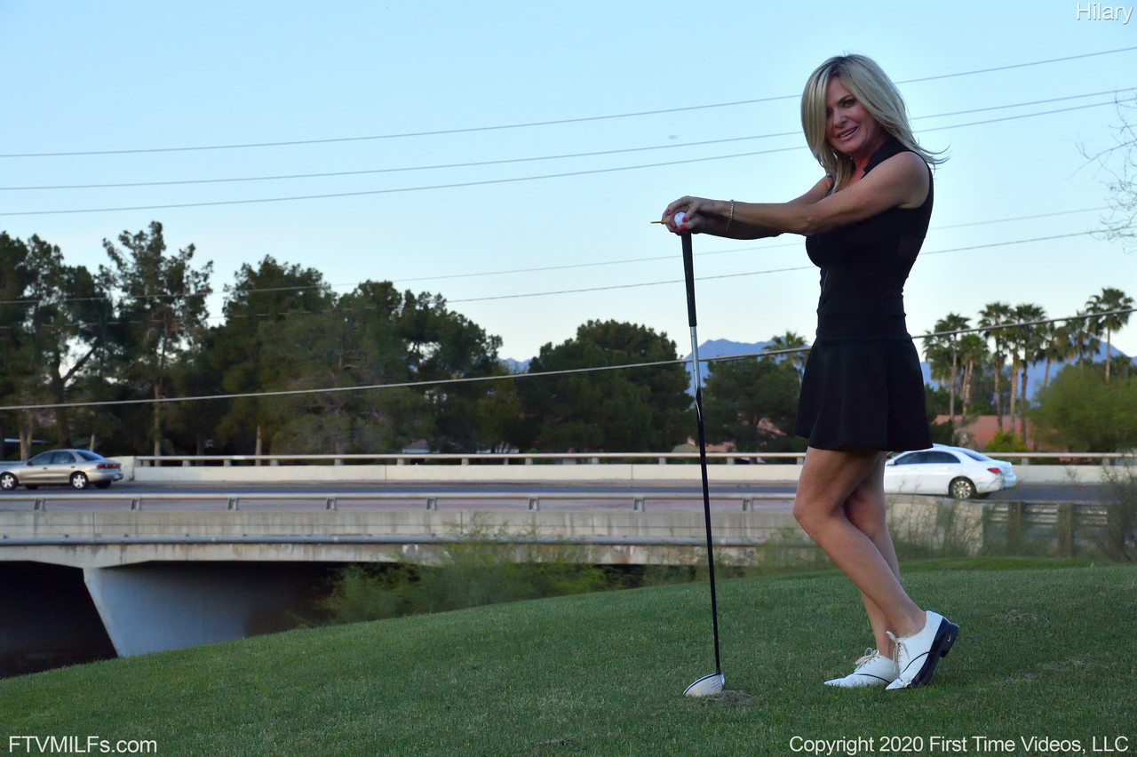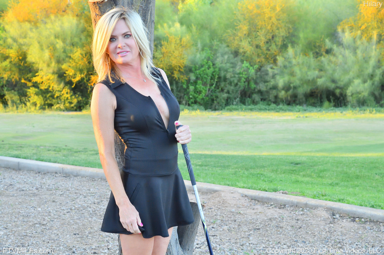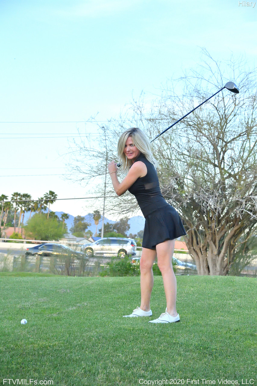 मोहक हिलारी गोल्फ खेलते हुए पैंटी दिखाती है और क्लीवेज दिखाती है - गैलरी जानकारी