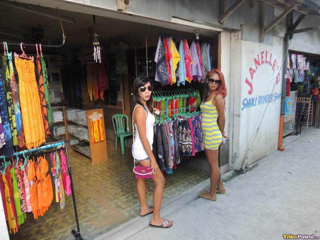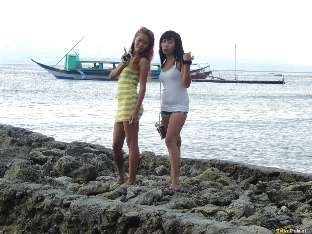 एशियाई किशोरियां शैनल और बबल्स स्किम्पी बीचवियर में पोज़ देती हैं