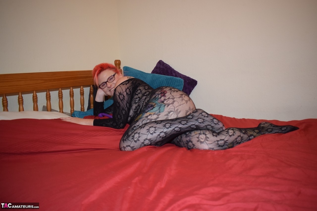 लाल बालों वाली एमेच्योर मोली फॉक्स बॉडीस्टॉकिंग में हस्तमैथुन करती है