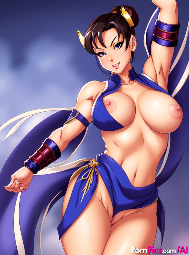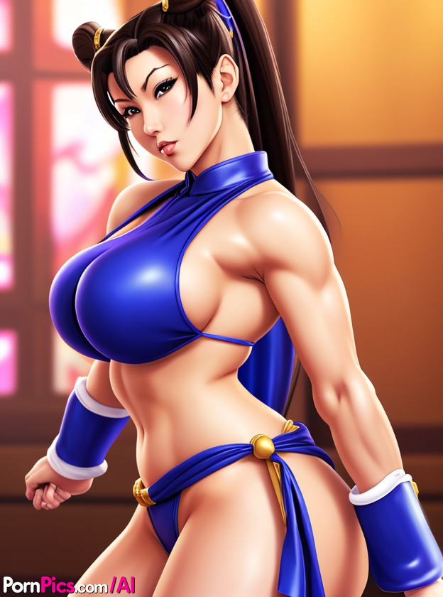 चुन-ली हेंताई बमशैल बिकिनी में बड़े बूब्स फ्लॉन्ट करती है, बाहर अकेले चूत फैलाती हुई एआई आर्ट