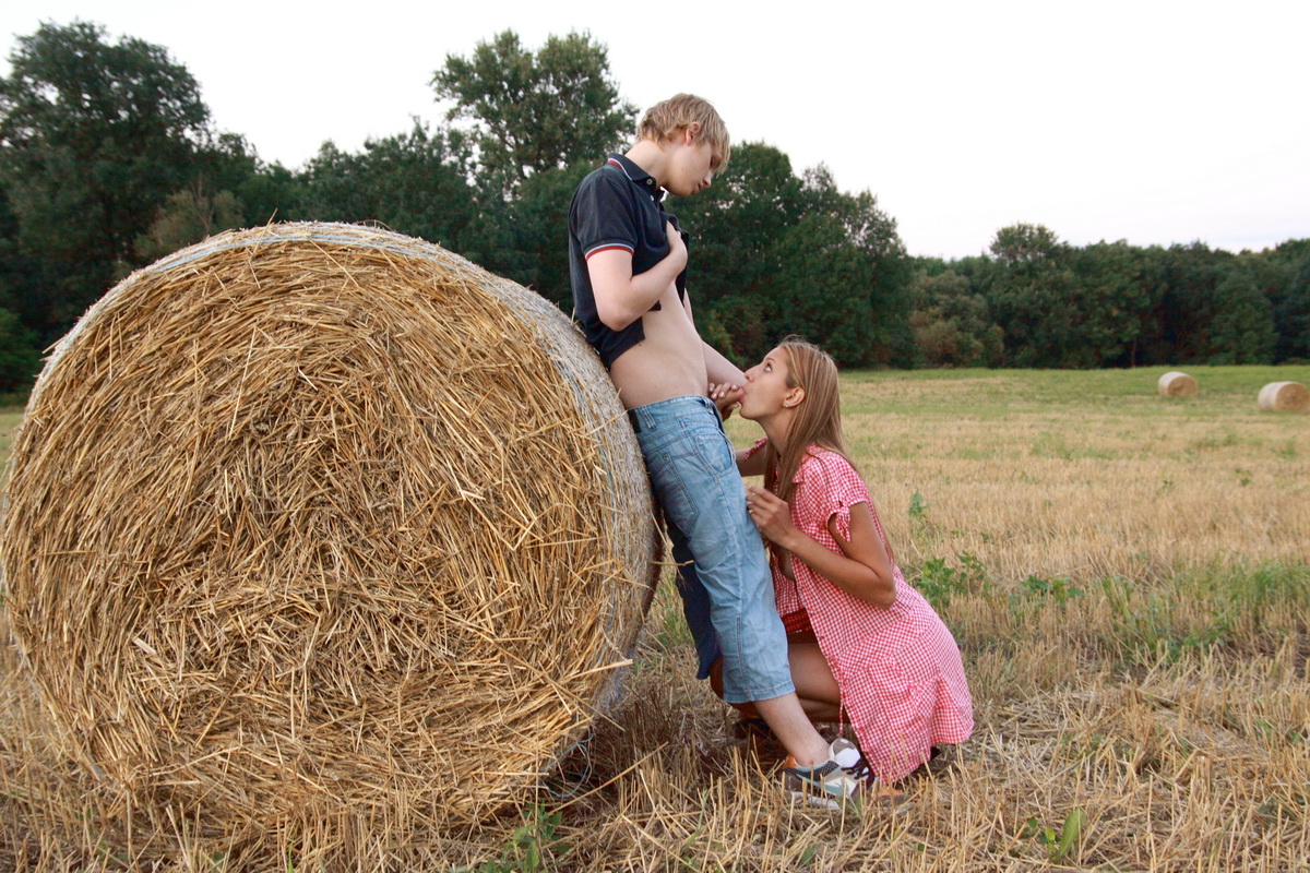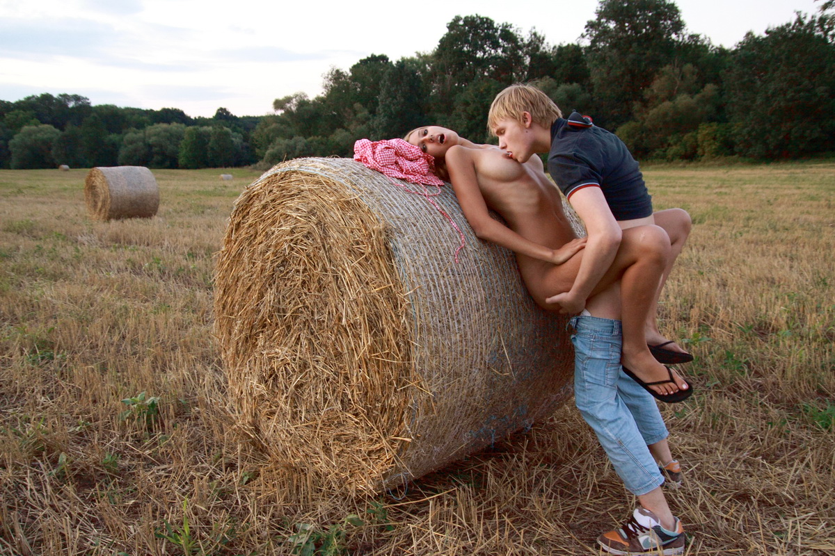 युवा लड़की और उसका प्रेमी खेत में गोल घास के गट्ठे के खिलाफ सेक्स करते हैं - गैलरी जानकारी