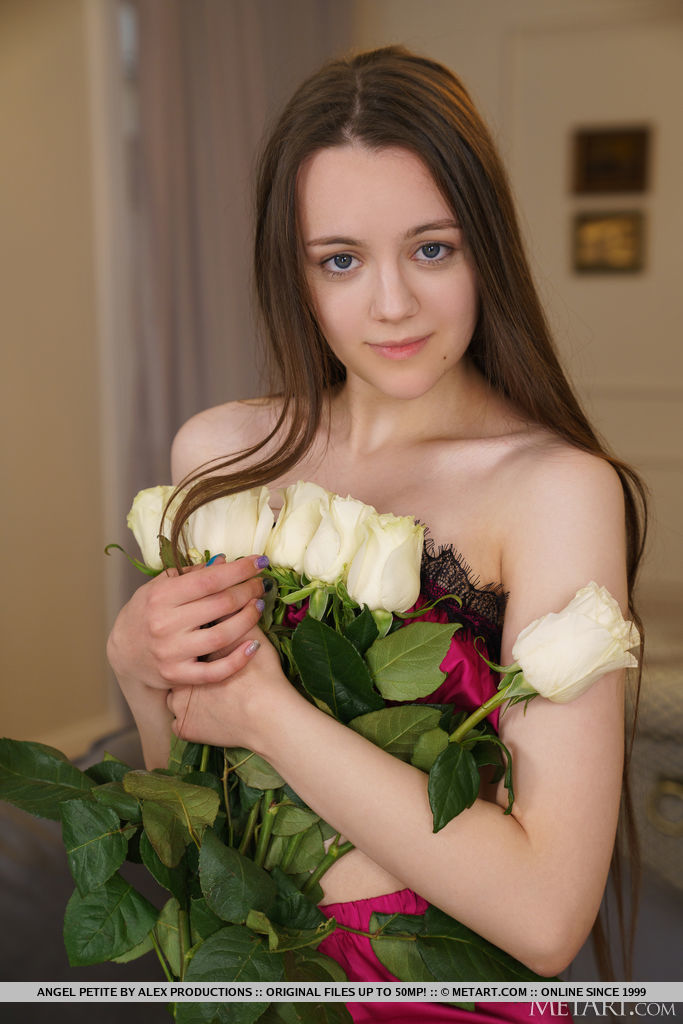 युवा सांवली पतली परी फूल पकड़े नंगी होने से पहले - फ़ोटो 6 / 18