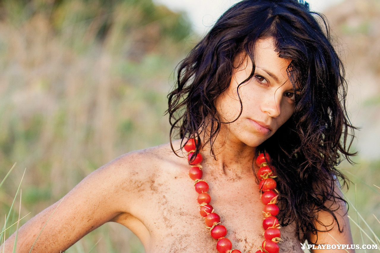 क्रिस्टिना ज़ेम्सकोवा नग्न सेंटरफोल्ड आग के पास बैठी - गैलरी जानकारी