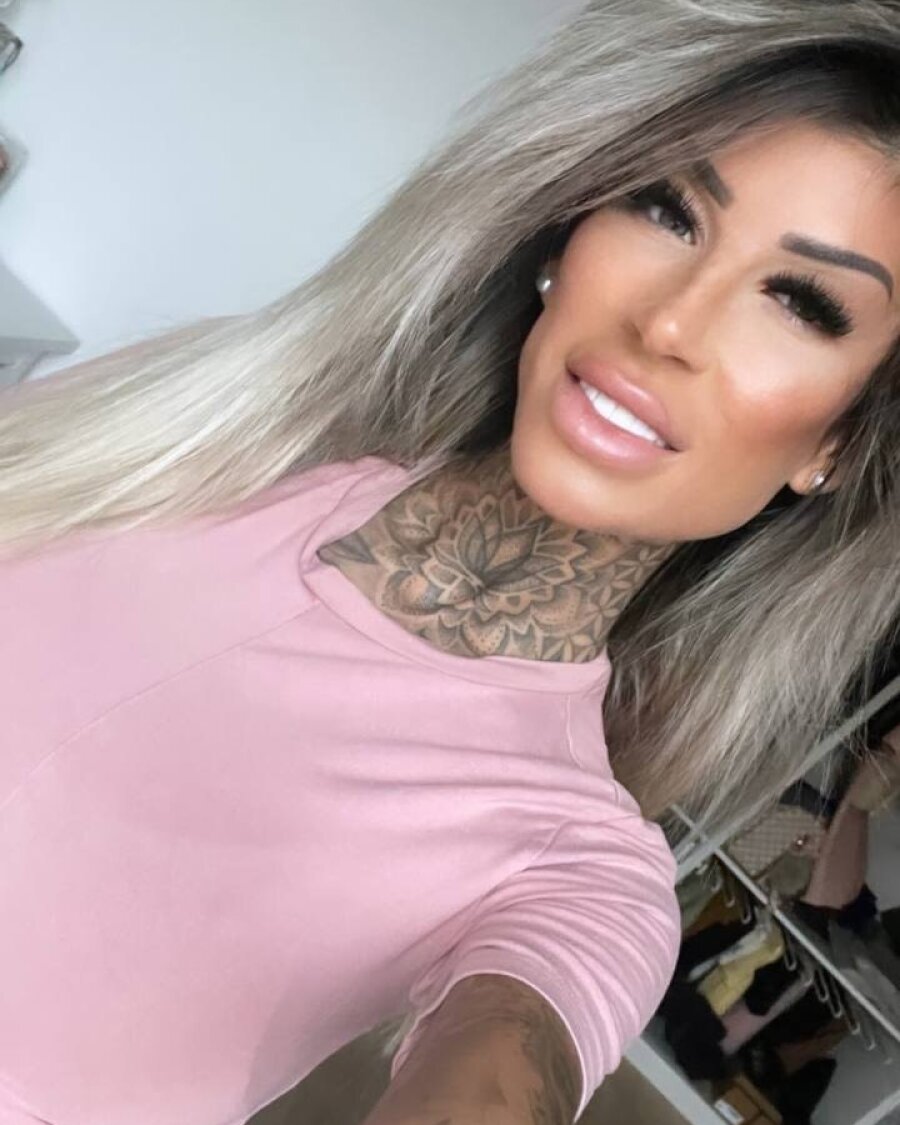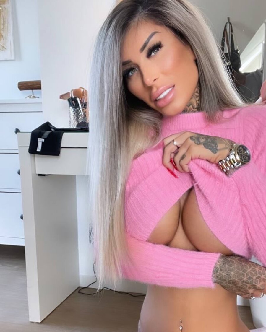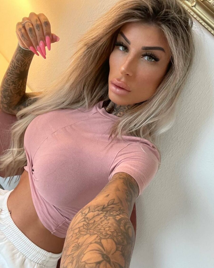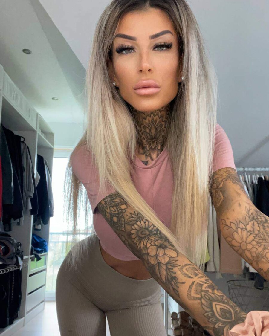 टैटू वाली ग्लैमर बेब अपने रसदार स्तन और टैटू दिखाती है