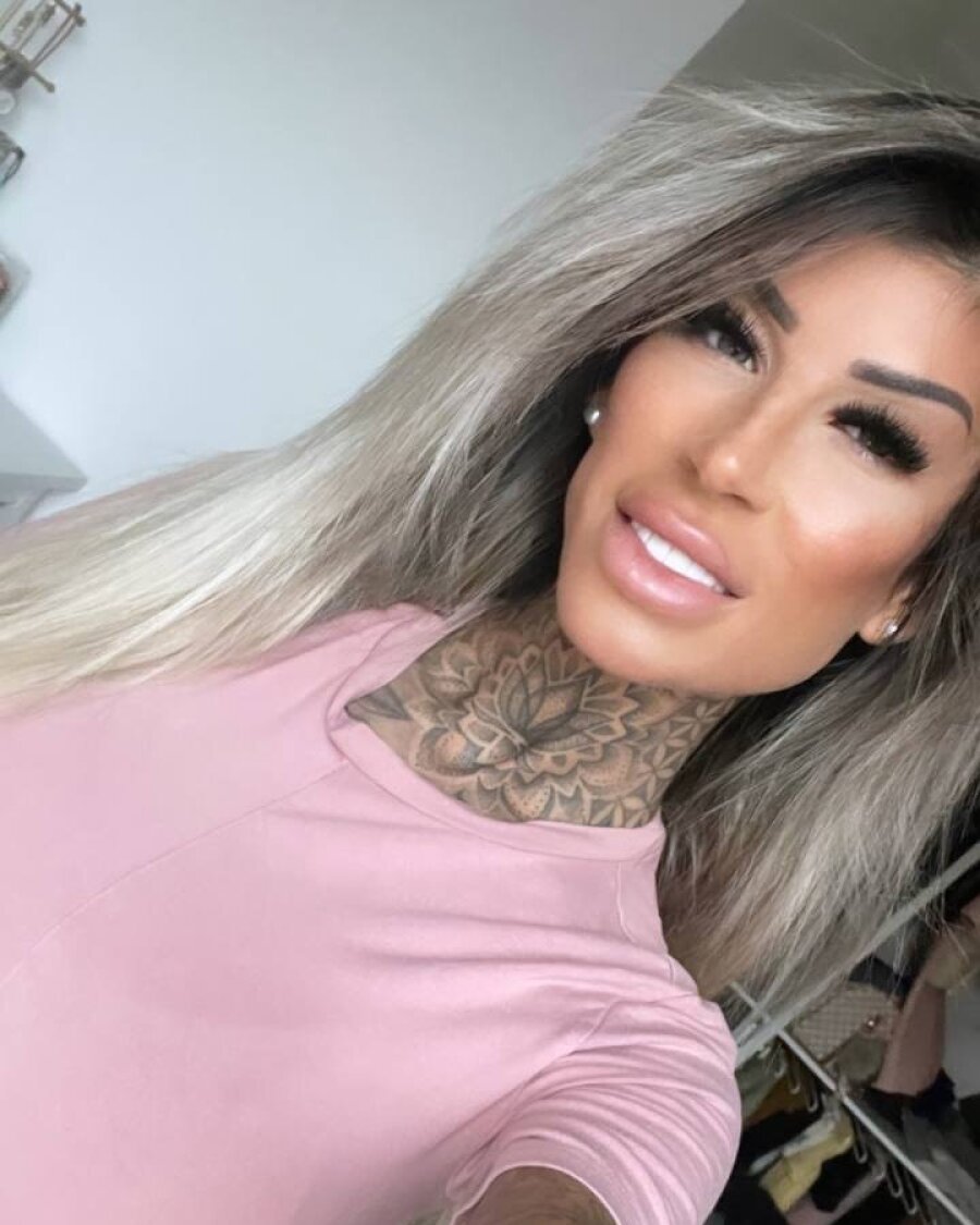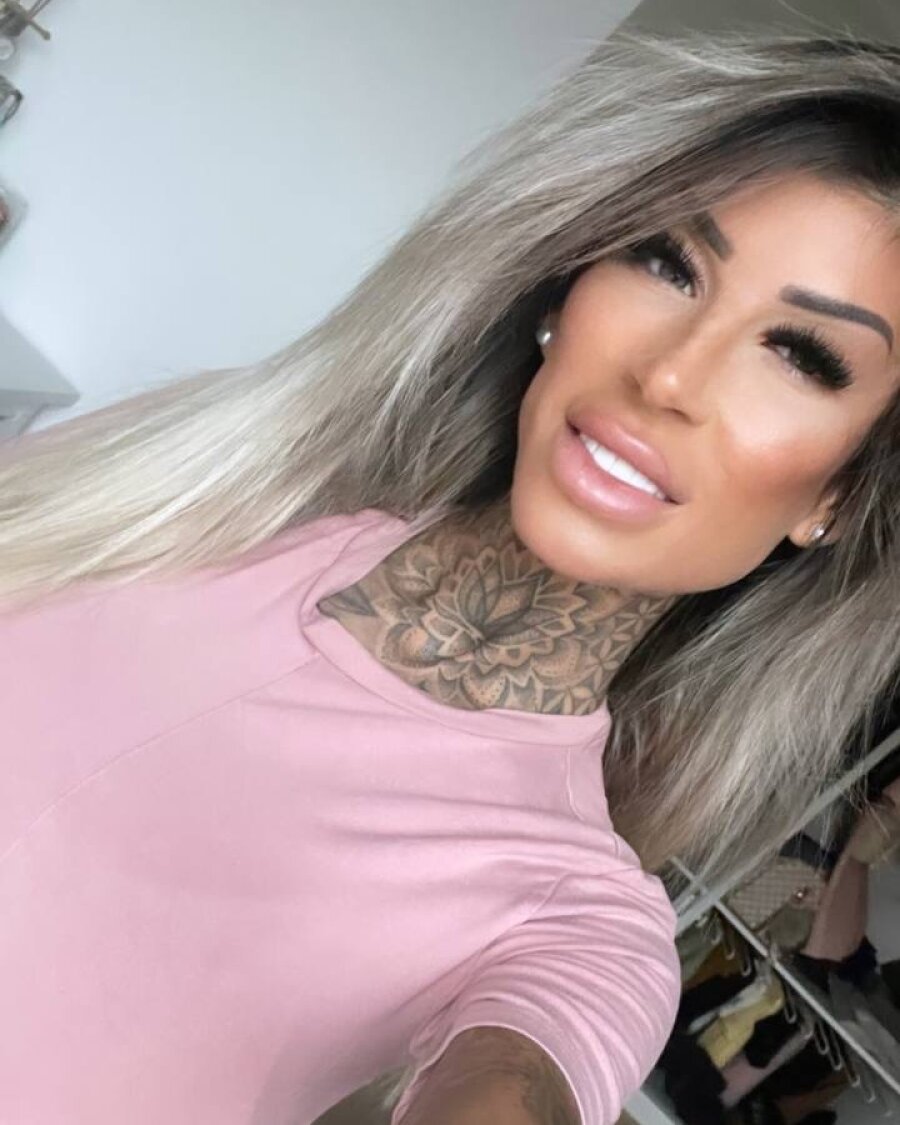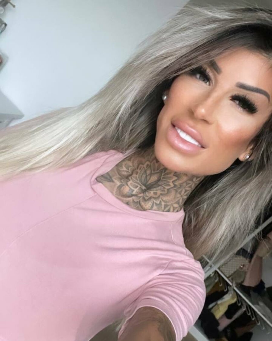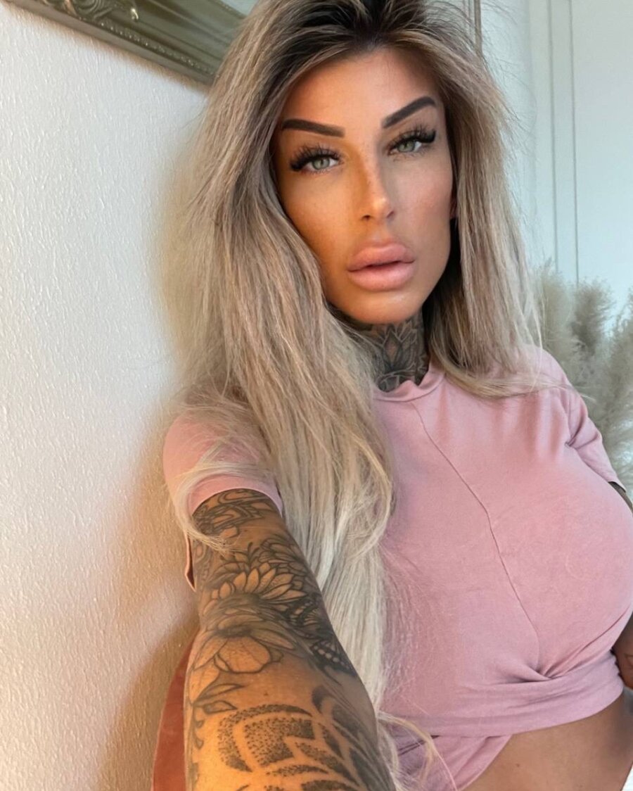 टैटू वाली ग्लैमर बेब अपने रसदार स्तन और टैटू दिखाती है
