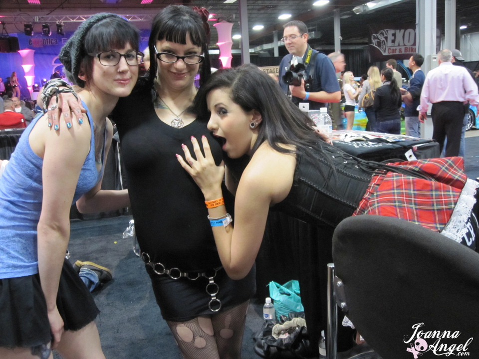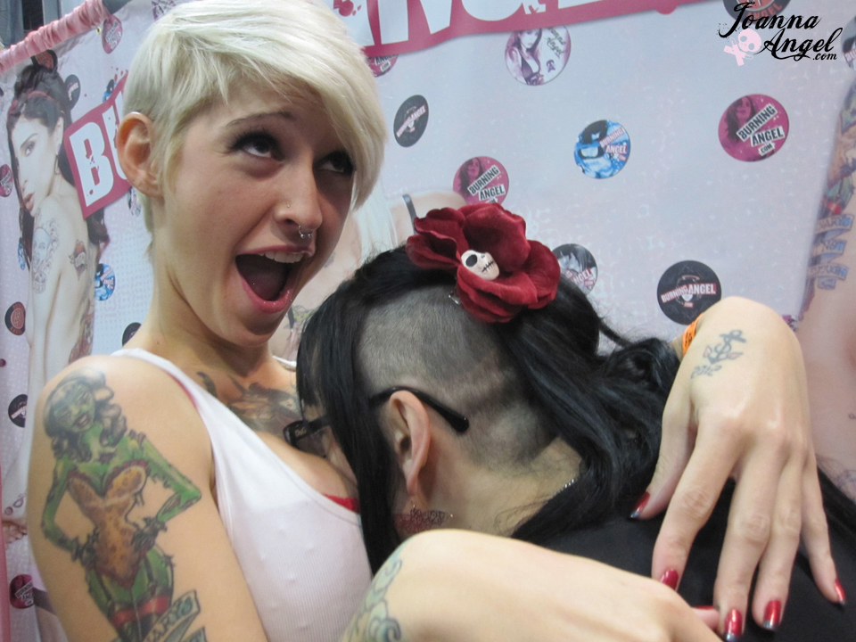टैटू वाली वैकल्पिक मॉडल XXX ट्रेड शो में चुंबन और मस्ती करती हुई - गैलरी जानकारी