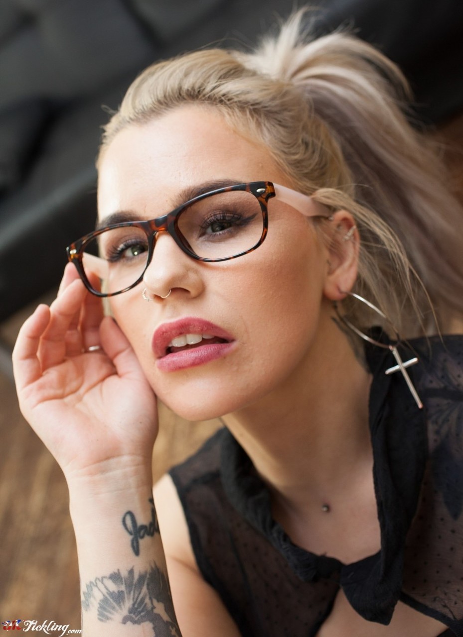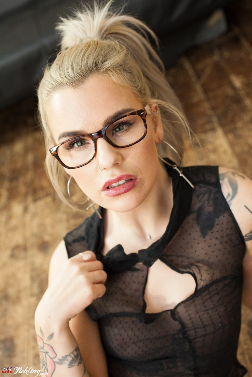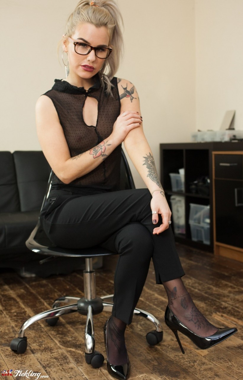 Tattoo Blonde Glasses Office Feet Stocking Feet Today