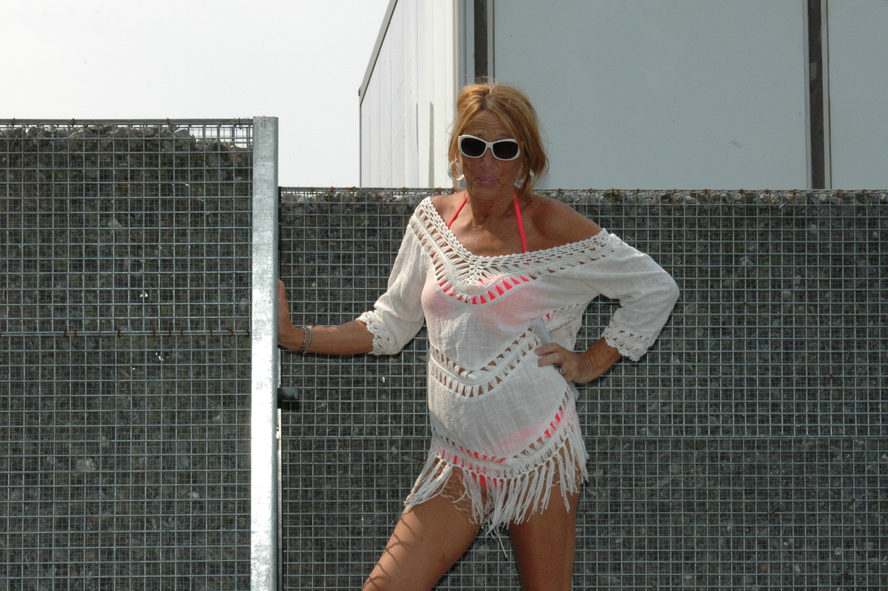 MILF Kyra teases in sheer stockings, sky-high heels and lingerie, flashing cameltoe, facesitting, bikini close-ups and outdoor heat.
