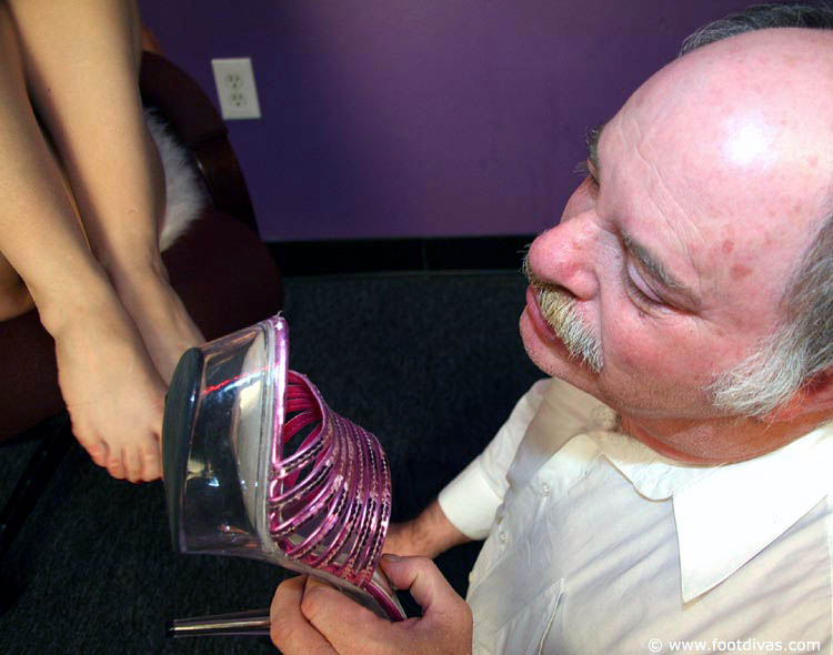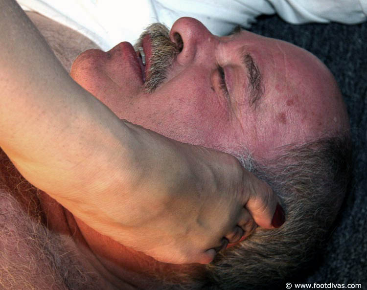 Redheaded Woman Rubs Bare Feet Over Older Man's Face - Gallery Information