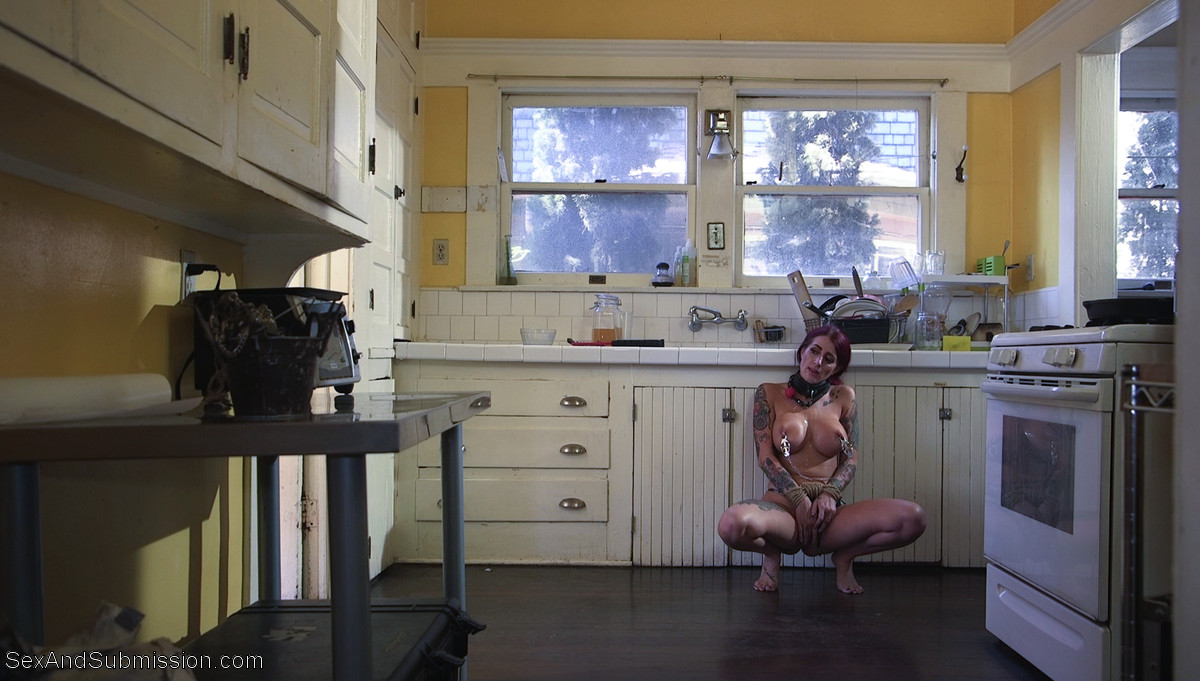 Busty redhead housewife Tana Lea submits to Charles Dera in raw BDSM bondage, her tattooed body taking a deep pussy creampie and dripping cum finale.