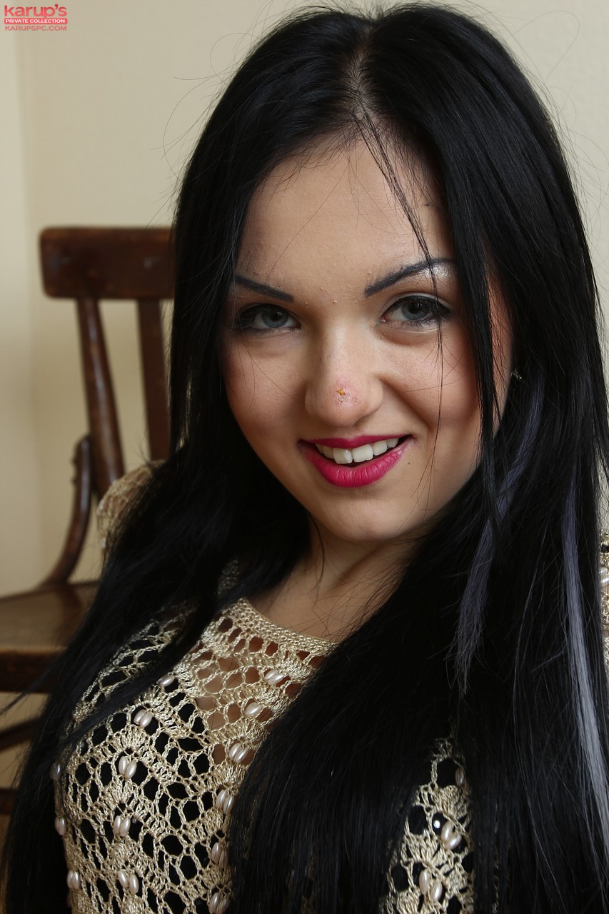 ティーンのキャサリンAが裸になり椅子でポーズを取る