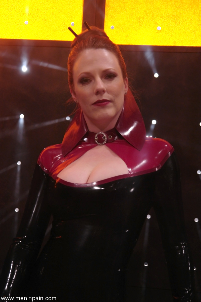 ラテックスの赤毛の女王Lady Lydia McLaneは、服従者Rick Huntを聖アンデレ十字に縛り、スカートの中でチンポを焦らしてから、容赦ない女王様のペギングでフィニッシュ。