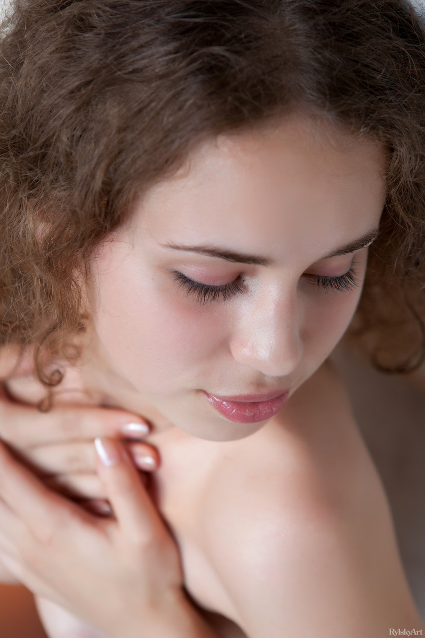 ティーンのキャサリンAが裸になり椅子でポーズを取る