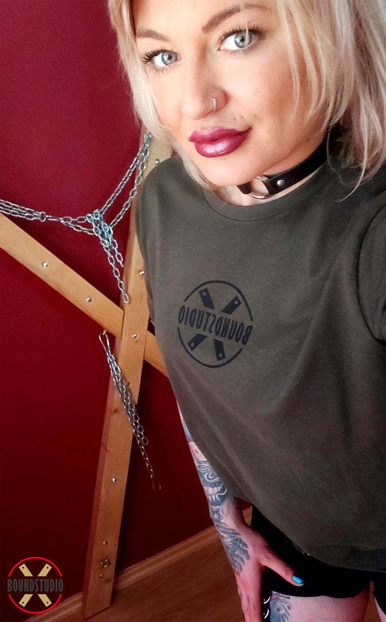 タトゥーの金髪ロクシー・マンソンが聖アンドレ十字でボールギャグを外す - ギャラリー情報