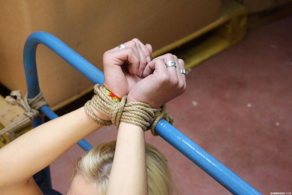 金髪のイロナがベッドフレームに縛られてマシンディルドで犯される - ギャラリー情報