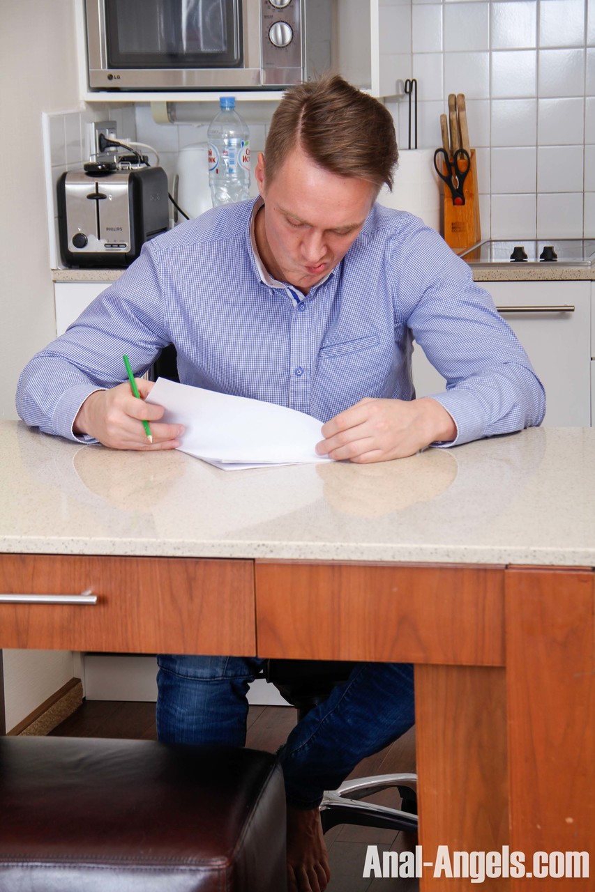 ロシアの赤毛人妻ヘイゼル・デュ、職場でデスクに突っ伏して激しいアナル騎乗位、スカートたくし上げ、ヒール履いたまま、天然おっぱいが弾む。