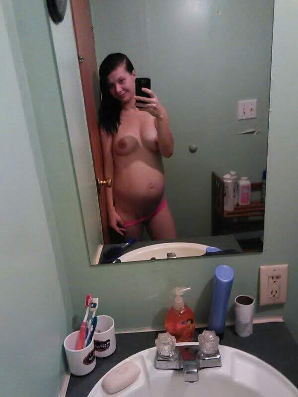 可愛い妊婦素人美女アマンダ・マークスが鏡の前で脱ぎポーズを取る - 写真 15 / 15