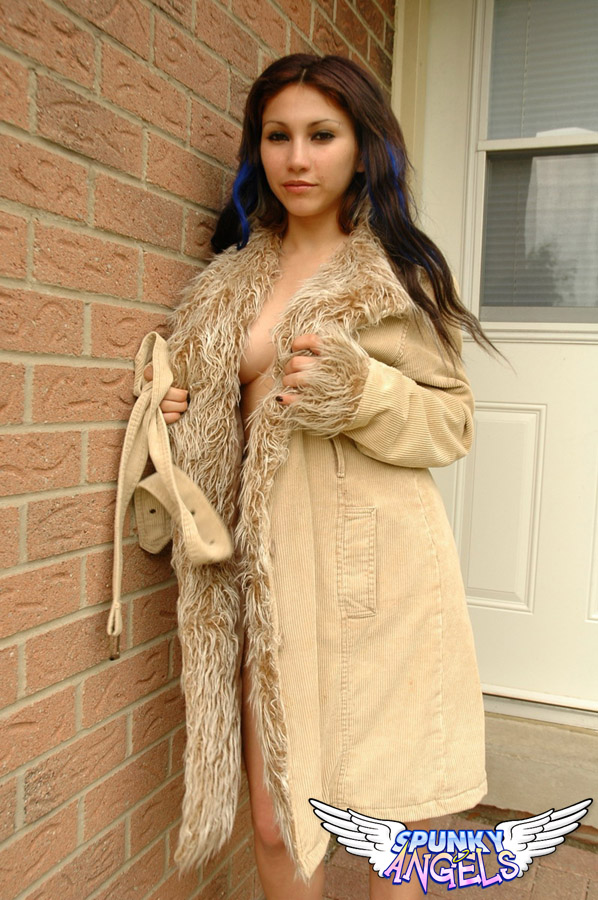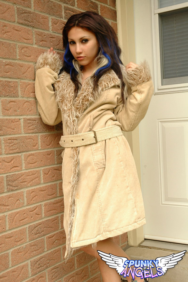 ブラジル素人十代少女がファーコートで屋外で引き締まったラテン尻をちら見せ—スレンダーで可愛いブラウネットがドア横でスカートめくり挑逗