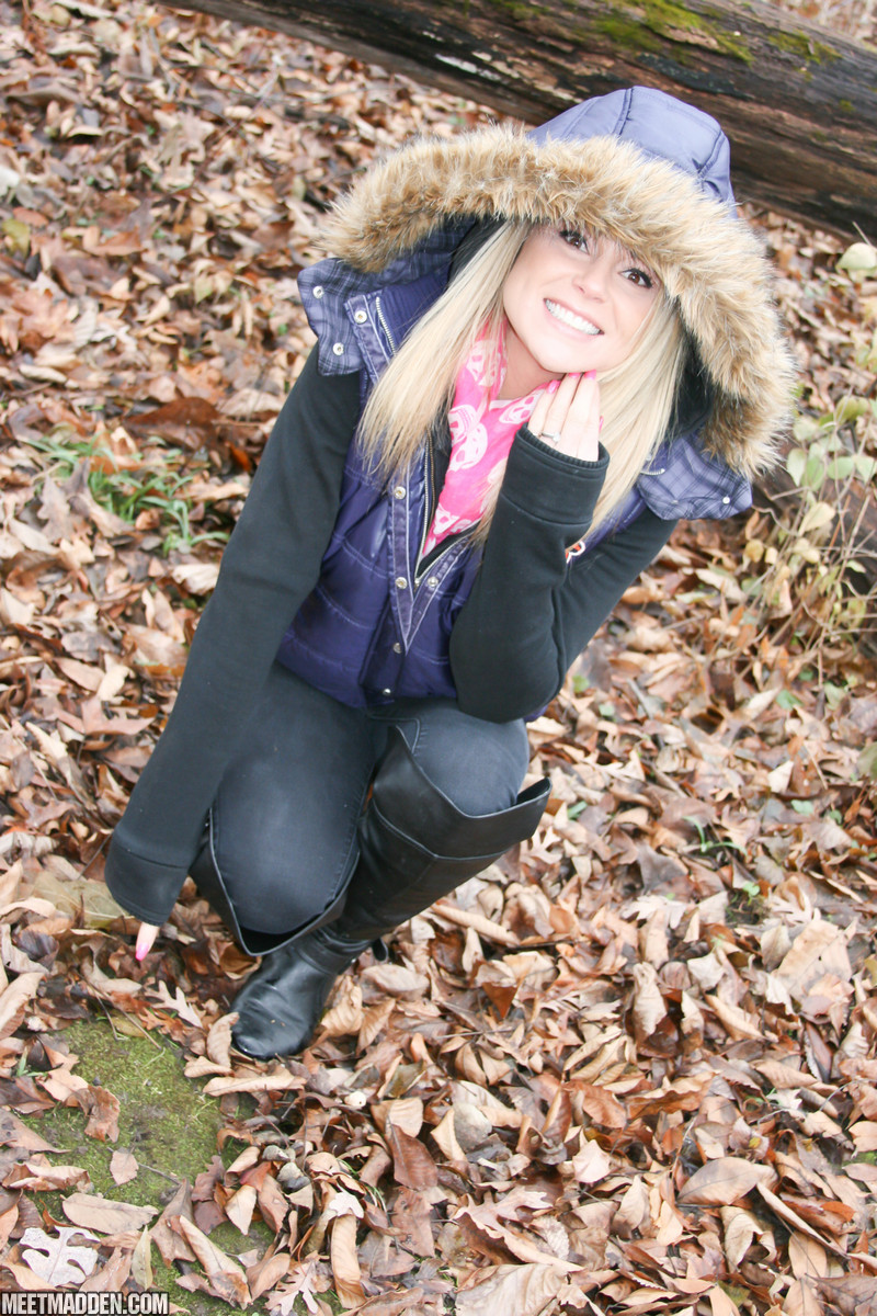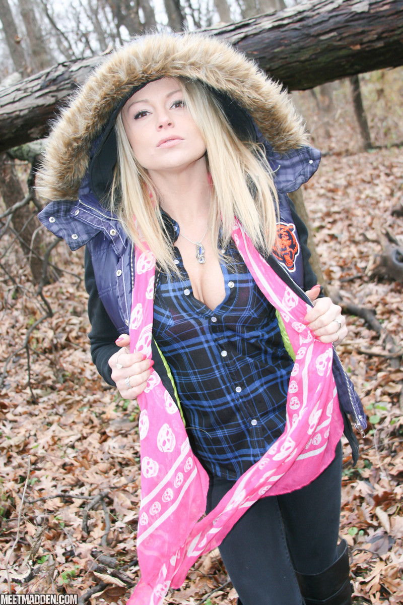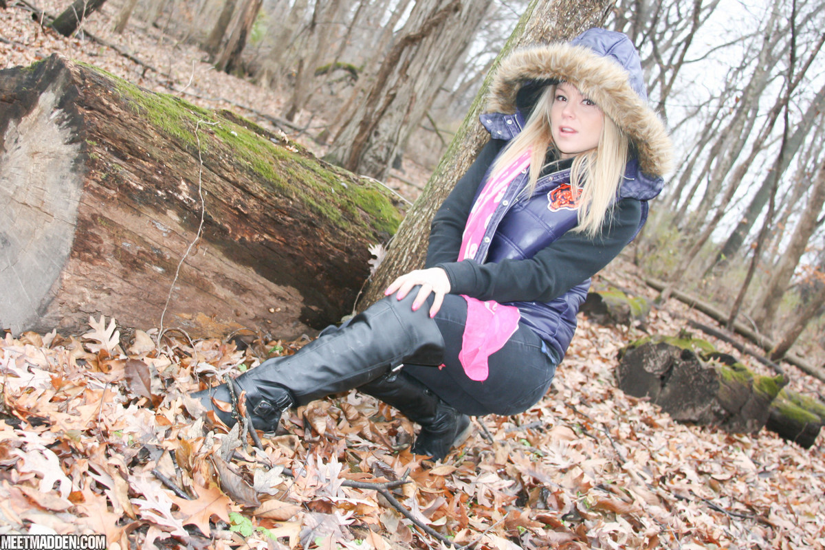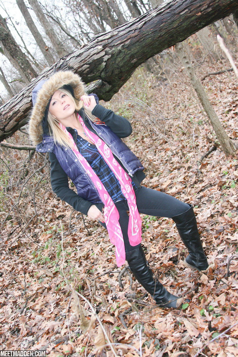 アマチュア娘ミート・マッデンは寒い日に森でピンクのブラを露出 - ギャラリー情報