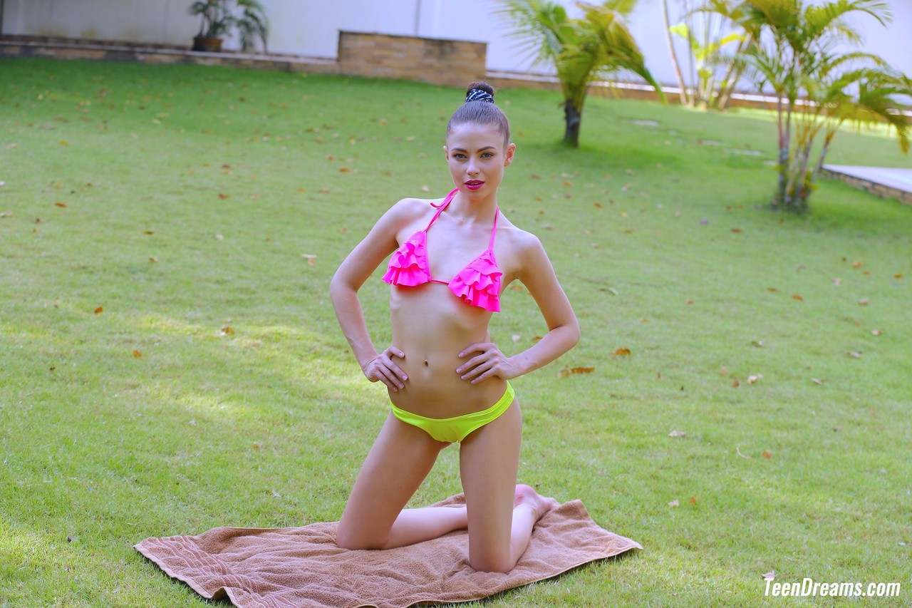 素人ティーンエイジャー・エイミー・スマイルがビキニを脱ぎ野外で体を見せつける