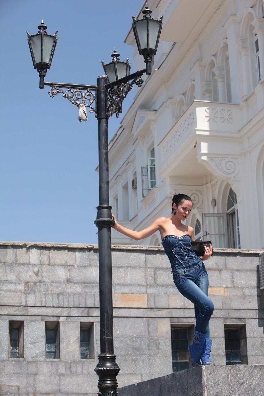スレンダー少女ダロリアが屋外でマイクロビキニとジーンズを脱ぎ、締まったマ○コとグラマラスなお尻を露出してMet Artの熱いヌードギャラリーに登場。