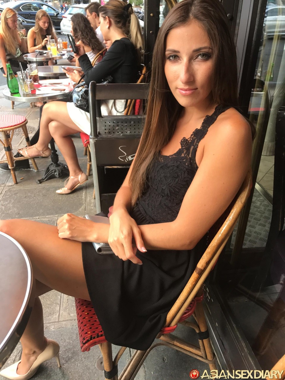 アジア系アメリカンの美人Stephanieがホテルルームでランジェリーまで脱ぎ、巨大なチンポに跨る、高身長の素人美女。