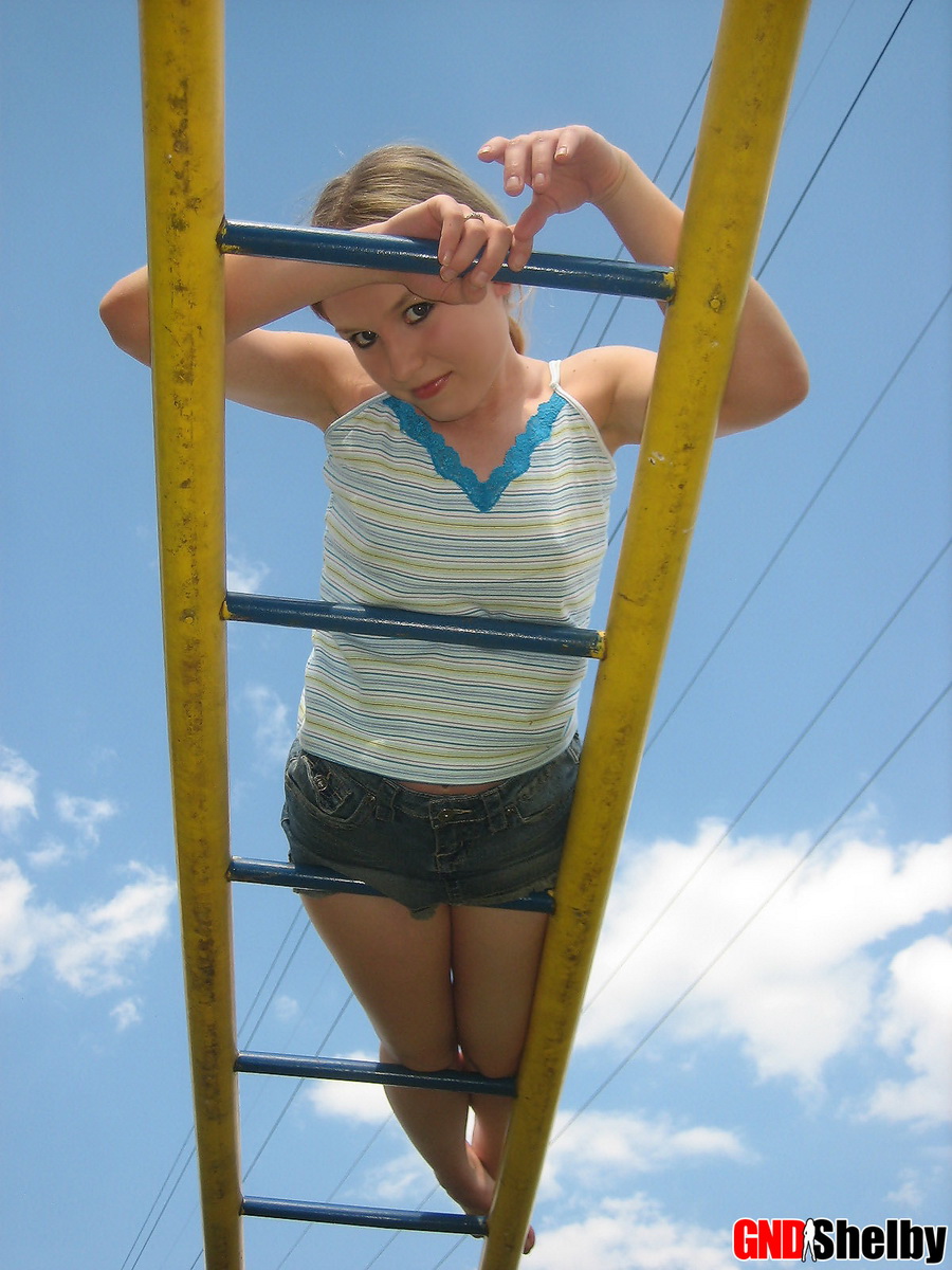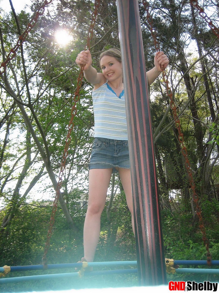 若い素人女性が遊具場でアップスカート中に小さな胸を露出 - ギャラリー情報
