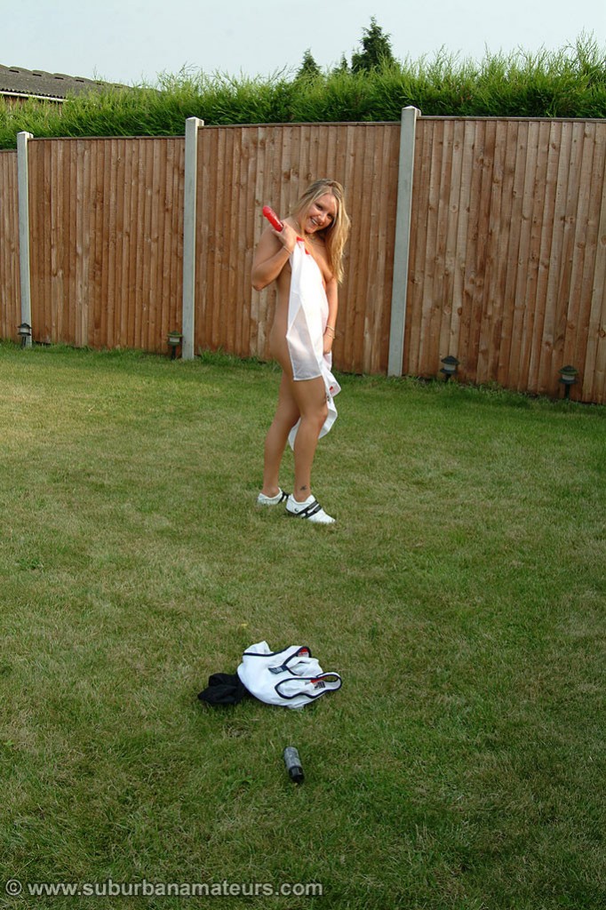 イギリス人の金髪のティーンエスターは、自宅の庭で行ったアマチュア撮影で、彼女の大きなお尻とおいしいマンコを自慢しながら、きついヨーロッパのマンコを見せることであなたの快感を提供します。