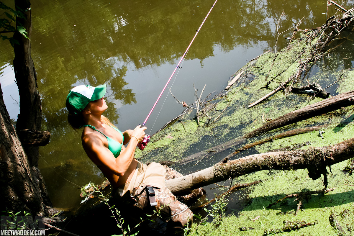 アマチュア人妻Meet Maddenが屋外でイタズラ、釣り用長靴を脱いで細いビキニボディとジューシーなお尻、メガネをセクシーに魅せるノンヌード釣りソロ。