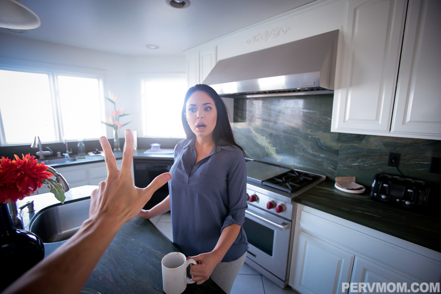 黒髪のミルク 母親ブルック ベレッタはランジェリーとストッキングの中で彼女の大きな乳房を誇り、第一人称の蒸気の多い手コキ、キッチンでのドギースタイルのペニスに乗り、彼女のラテンアメリカの乳房に熱い精液を受け取ります。