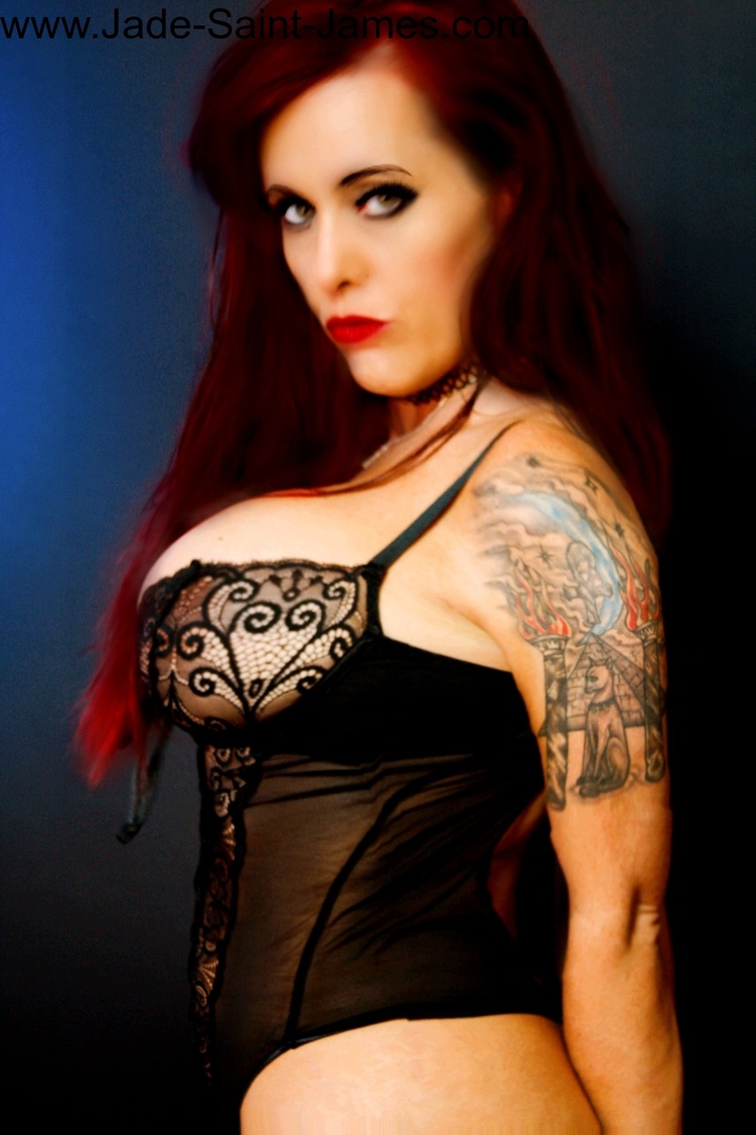アメリカ人美熟女ジェイド・セント・ジェームズがランジェリーで巨乳を披露 BDSMソロ - 写真 1 / 16