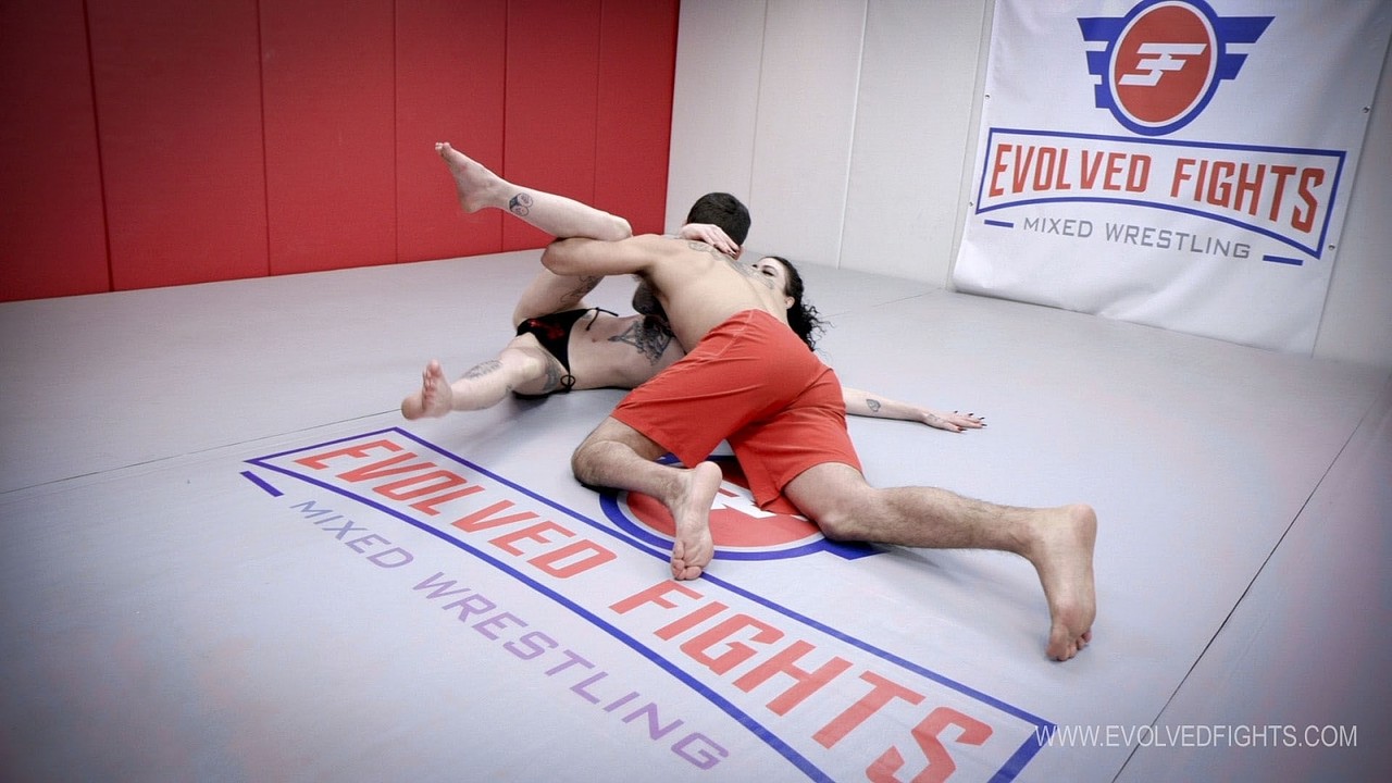 タトゥーのあるオルタナティブな女の子のリディア・ブラックは、汗だくなレスリング・マッチの後、乱暴なボンデージ・セックスに従う、彼女のタトゥーされた肌、縛られた足の指、そしてクリームなビキニ・マンチを、変態的な家族の役割プレイで見せる。