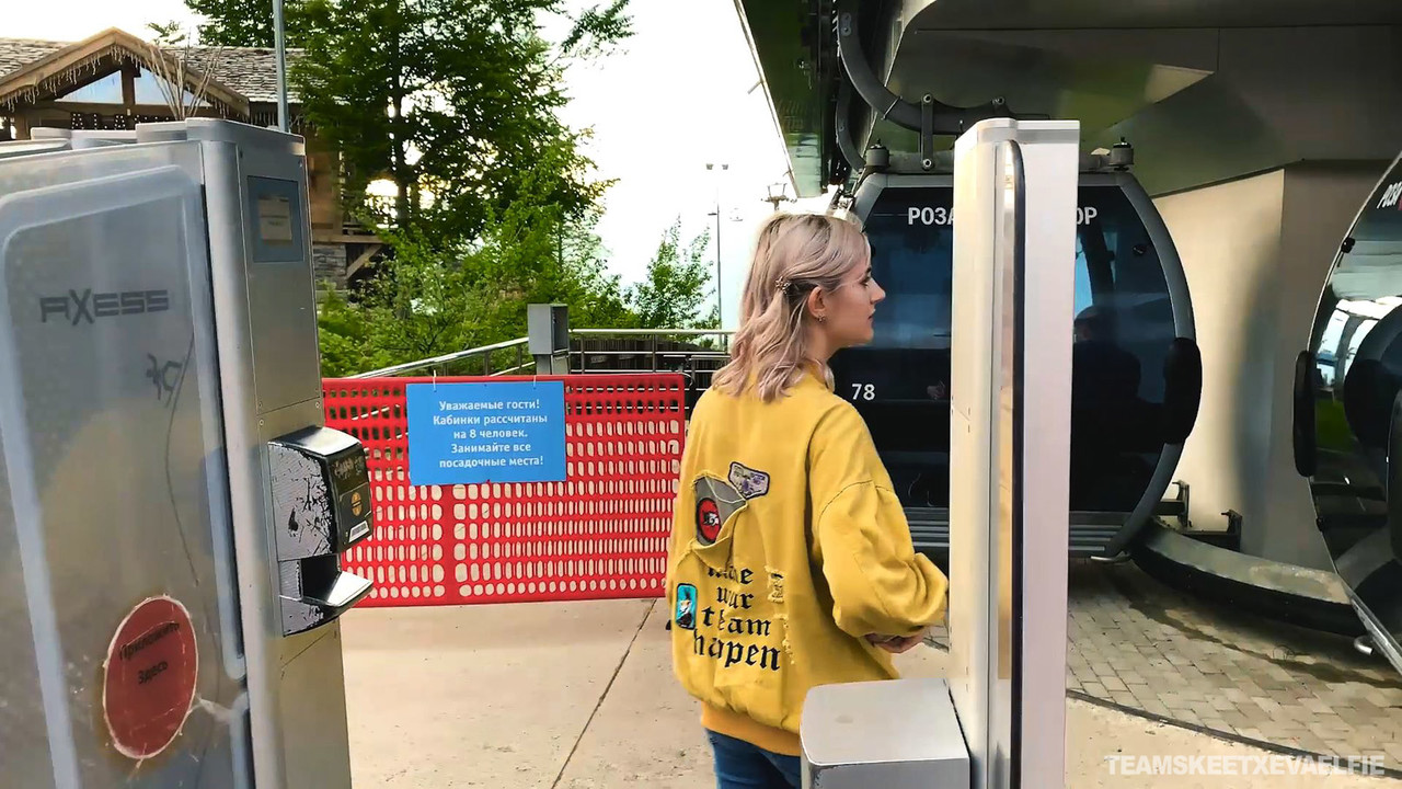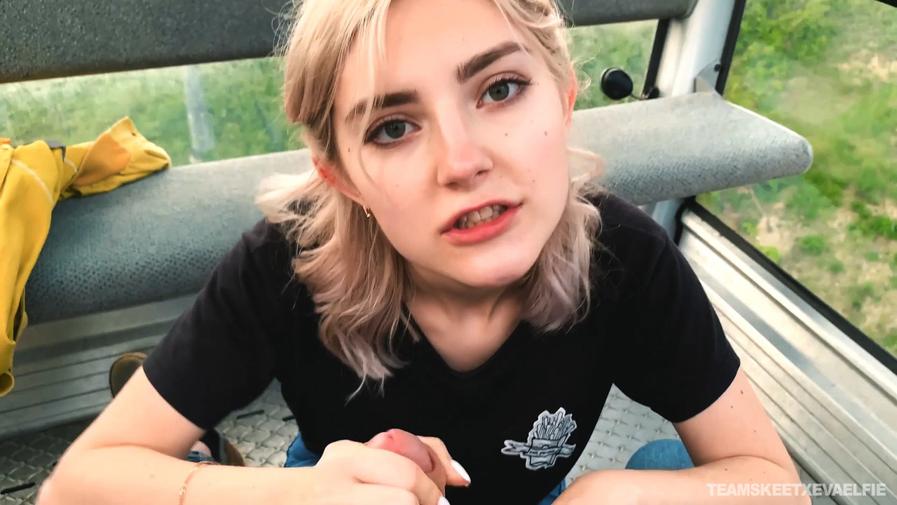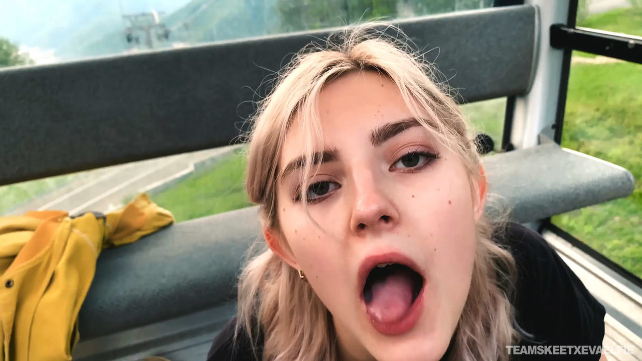 ロシア産の可愛い金髪ティーンAV女優エヴァ・エルフィー、ゴンドリフトで彼氏に熱い主観フェラ――ディープスロート、アイコンタクト、口内射精。