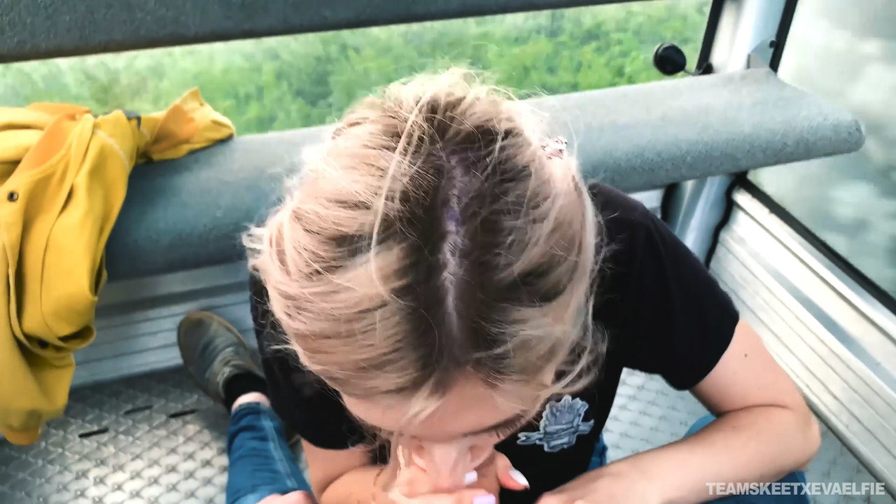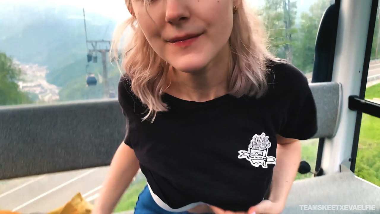 10代のポルノスターイーヴァエルフィーがボーイフレンドにゴンドラリフトの中でフェラチオをする - ギャラリー情報