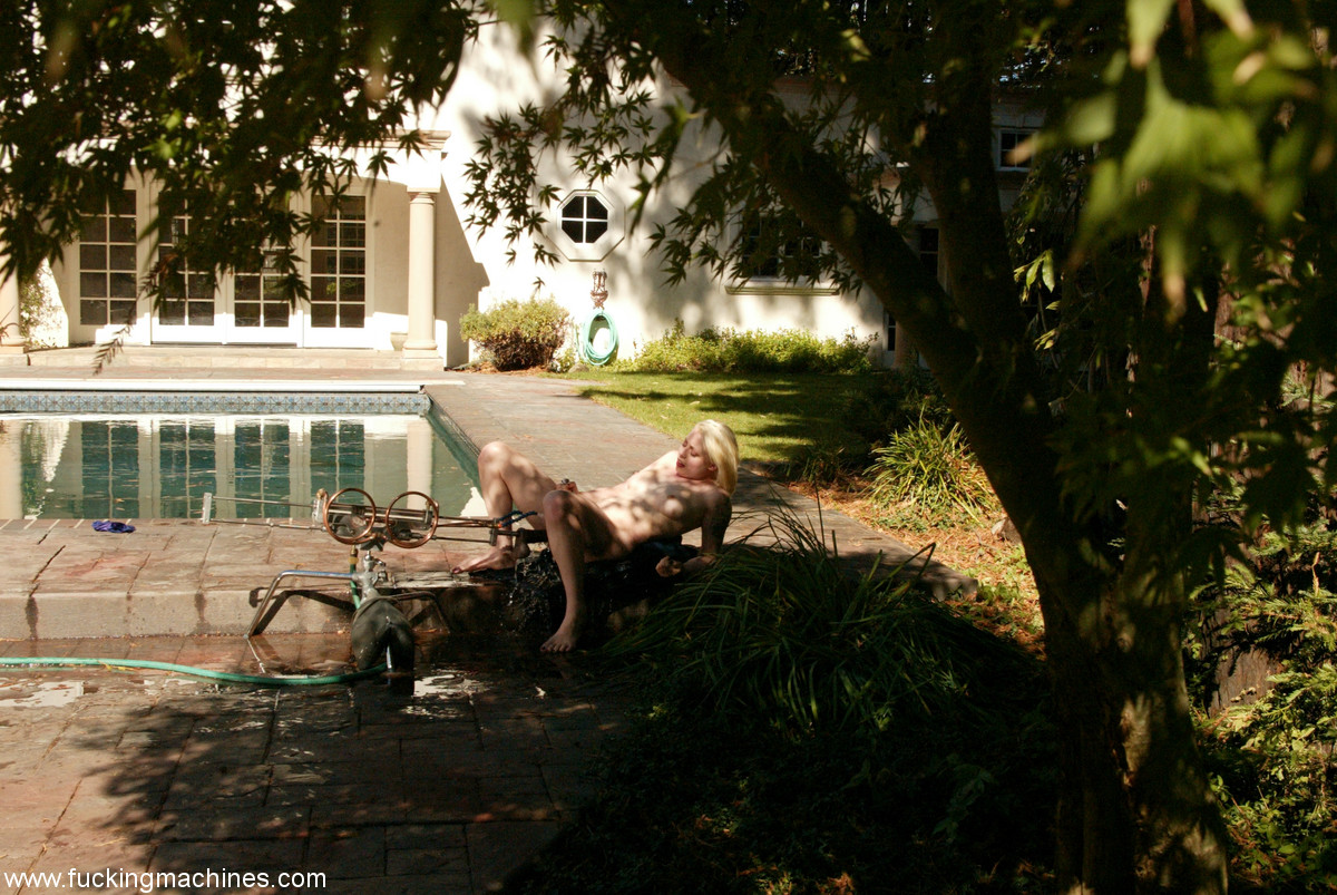 性的なブロンドのロレリー・リーはプールサイドでディルドーマシンによって彼女の膣を埋められる - ギャラリー情報