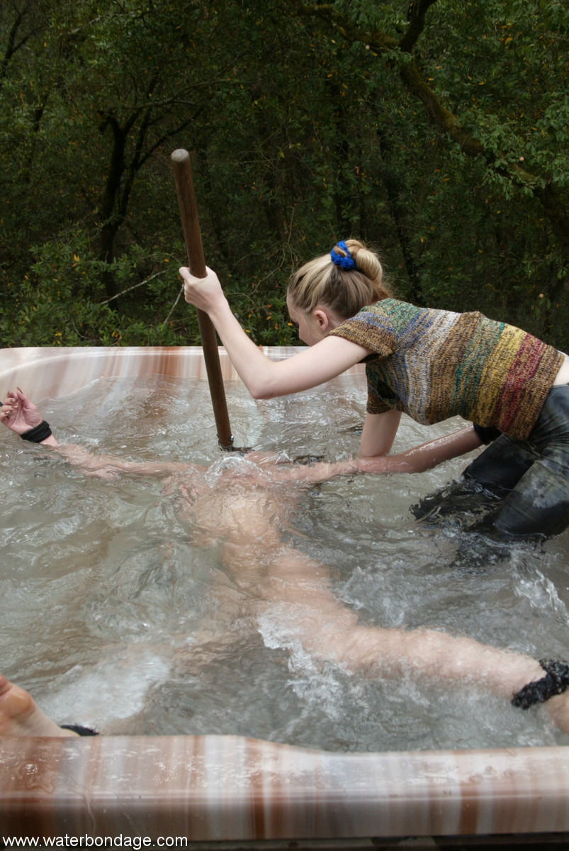 濡れたBDSM緊縛画廊:縛られたブラネットのブルック・バウンドとシャンタ・ローズ、完璧な裸体、水フェチ、滴り出すロープ、官能的な苦痛。