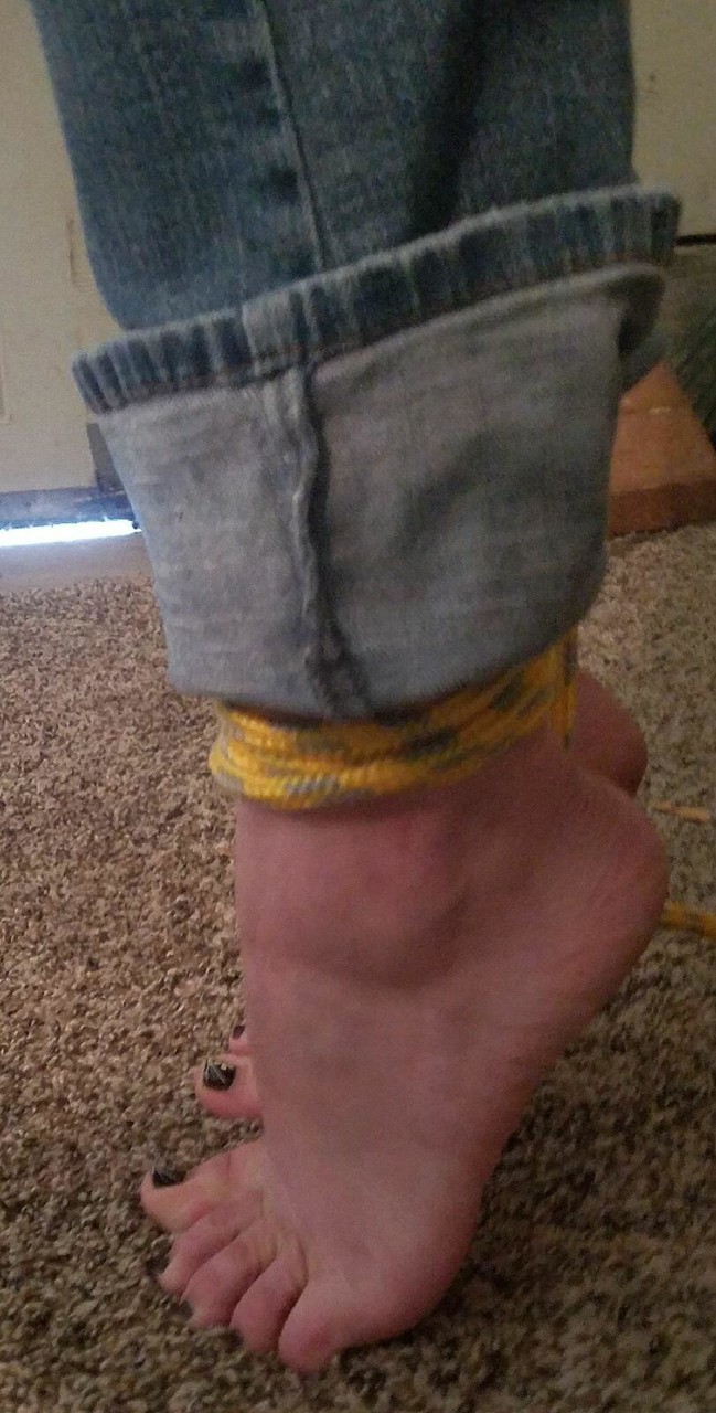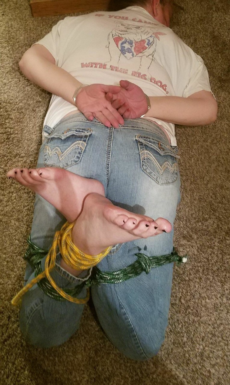 縛られた素人PAWGがタイトなジーンズで綺麗な足裏を披露——BDSM緊縛、足の裏接写、着衣チーズと羞恥プレイ。