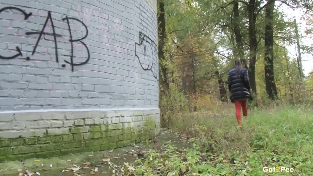ダイアナ甘い白い女の子が赤いパンティストッキングを下ろした後、建物の後ろでおしっこをする - ギャラリー情報