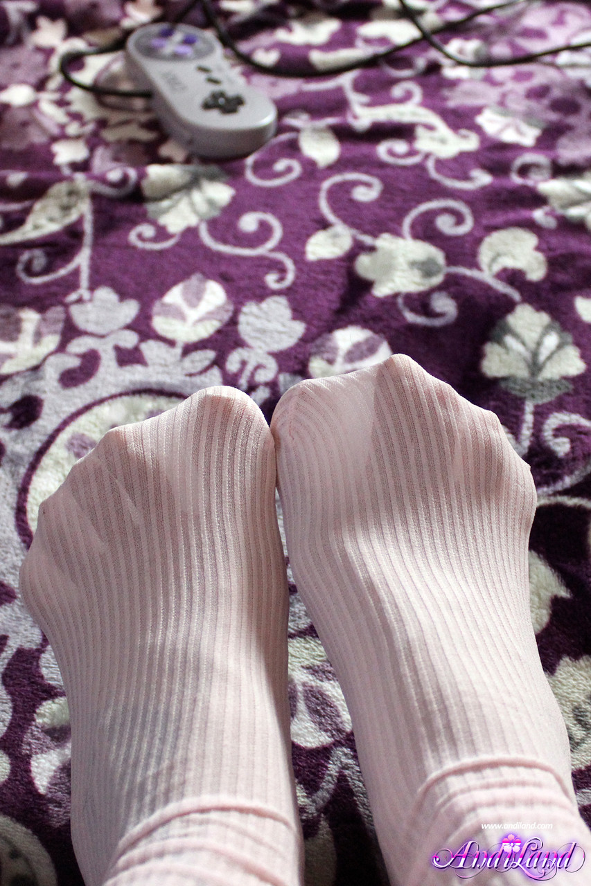 若いアンディ・ランドはOTKの靴下でおどけて、濡れたパンツをカメルトゥのクローズアップのために押しaside、濡れた少女のヴァギナを誇り、パイアス美女、細い足と足をソロの靴下ファンタジーで。