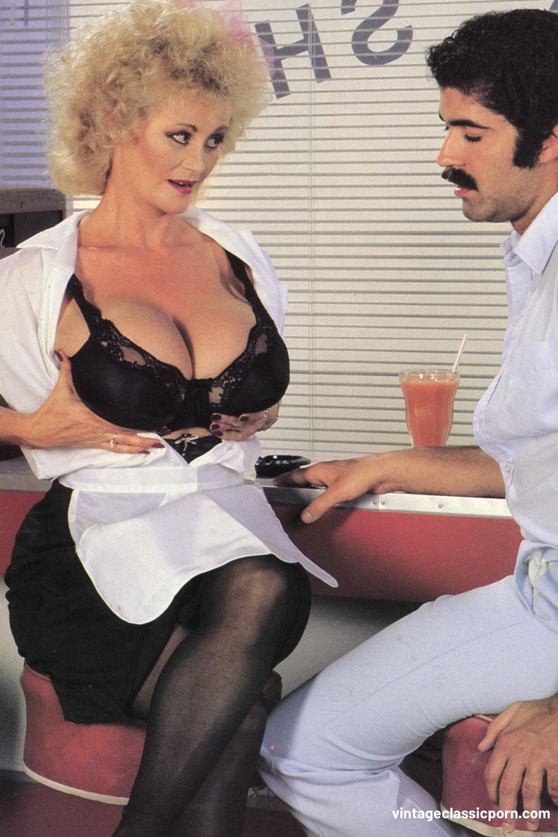 ヴィンテージ金髪アメリカ人美熟女、大きなクリトリスと毛深いマンコでレトロなリアリティハードコア接写で巨大チンポをディープスロート、巨乳と熟れた熱い曲線を披露。