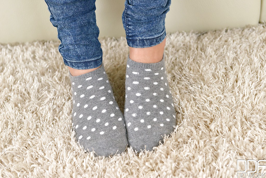 セクシーなソロの女、オニキス・ヴァイパーはトップレスで靴下を履いて、剃毛した濡れたマンコ、巨乳、タイトなジーンズ、足、完璧な尻のクローズアップで挑発する。