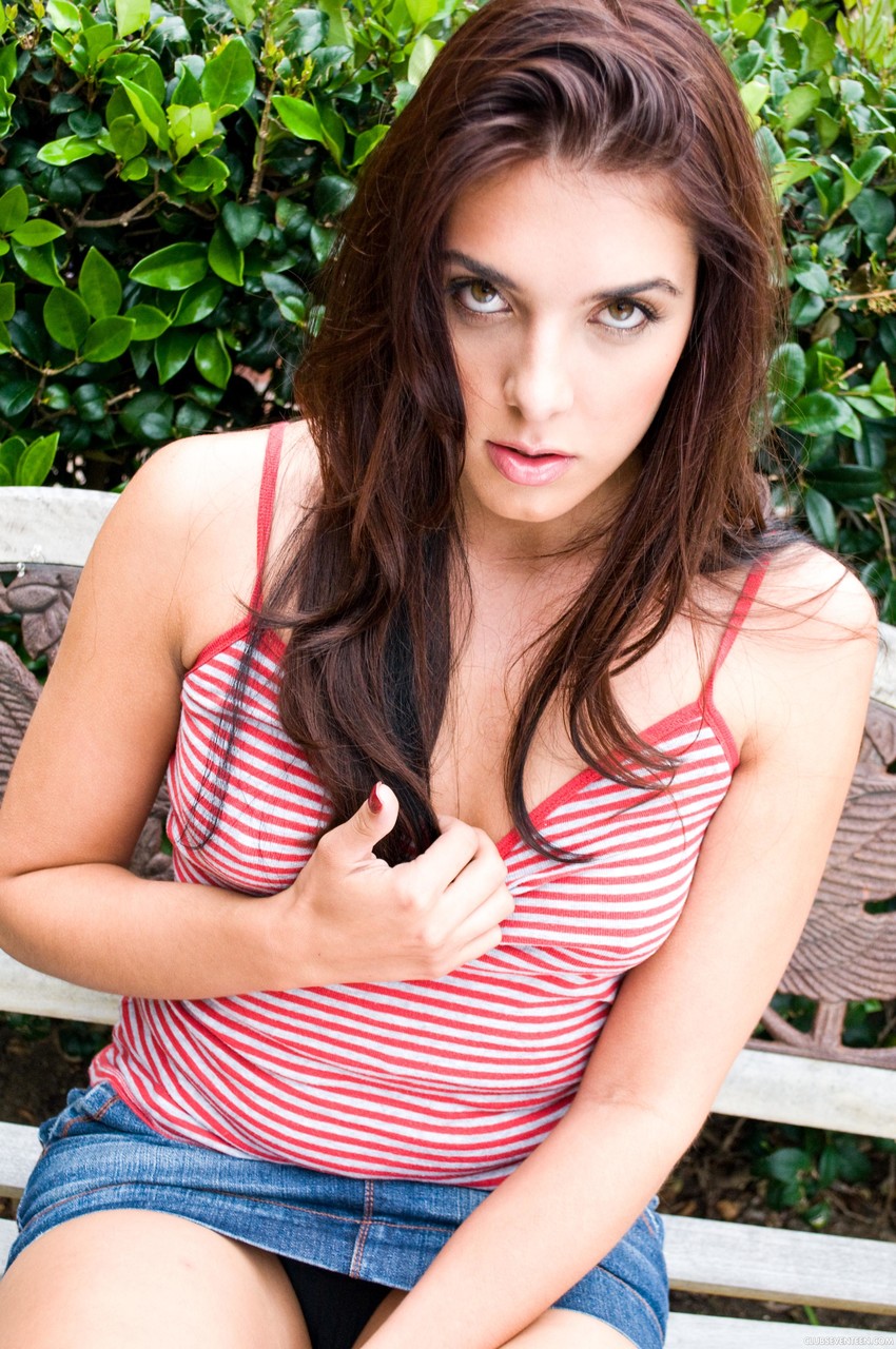 Claire Iが公衆の場でティーンのアップスカートギャラリーを挑発:スカートめくり、パンツを横に、陽射しの下でマンコのクローズアップ、サンダルと服のまま開脚。