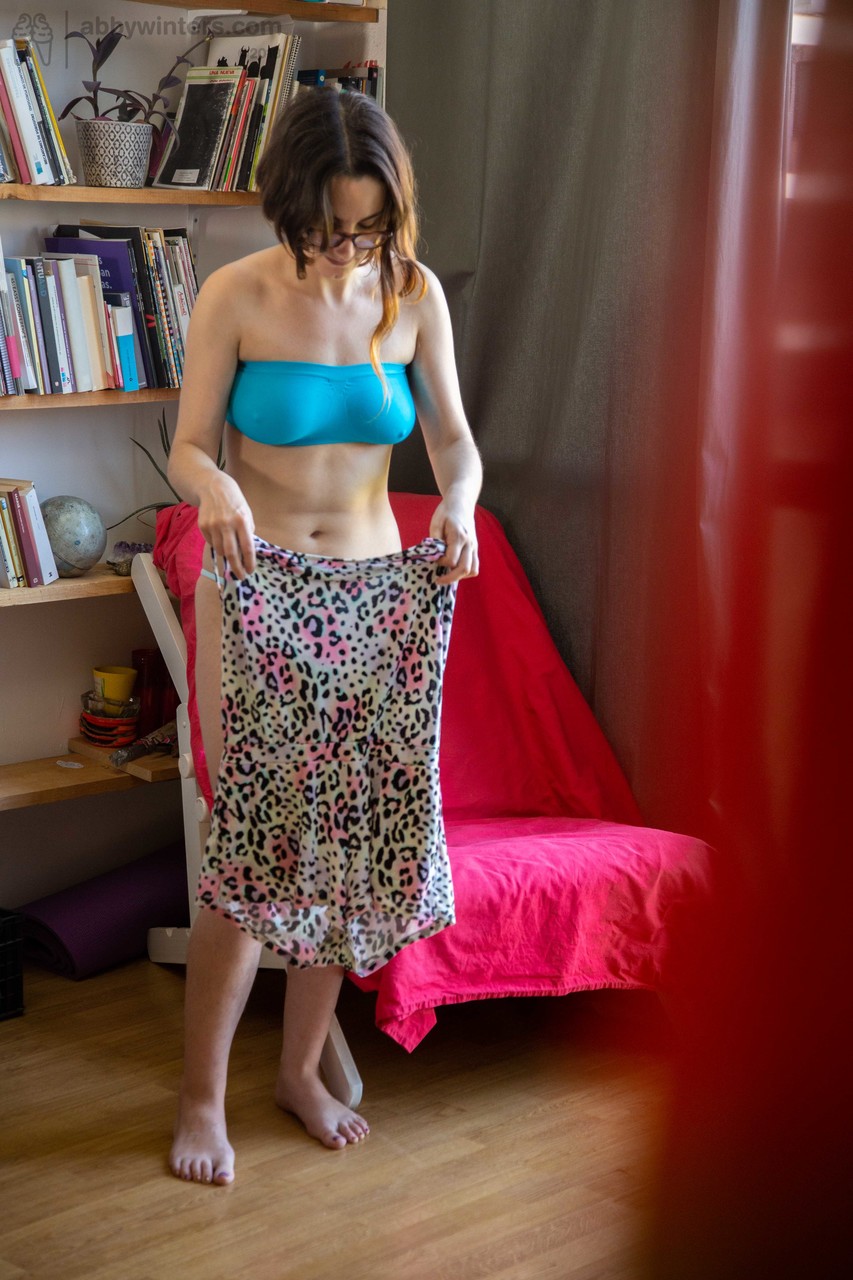 眼鏡をかけたルシアMが着替え中に毛深い腋と自然な茂みを見せる
