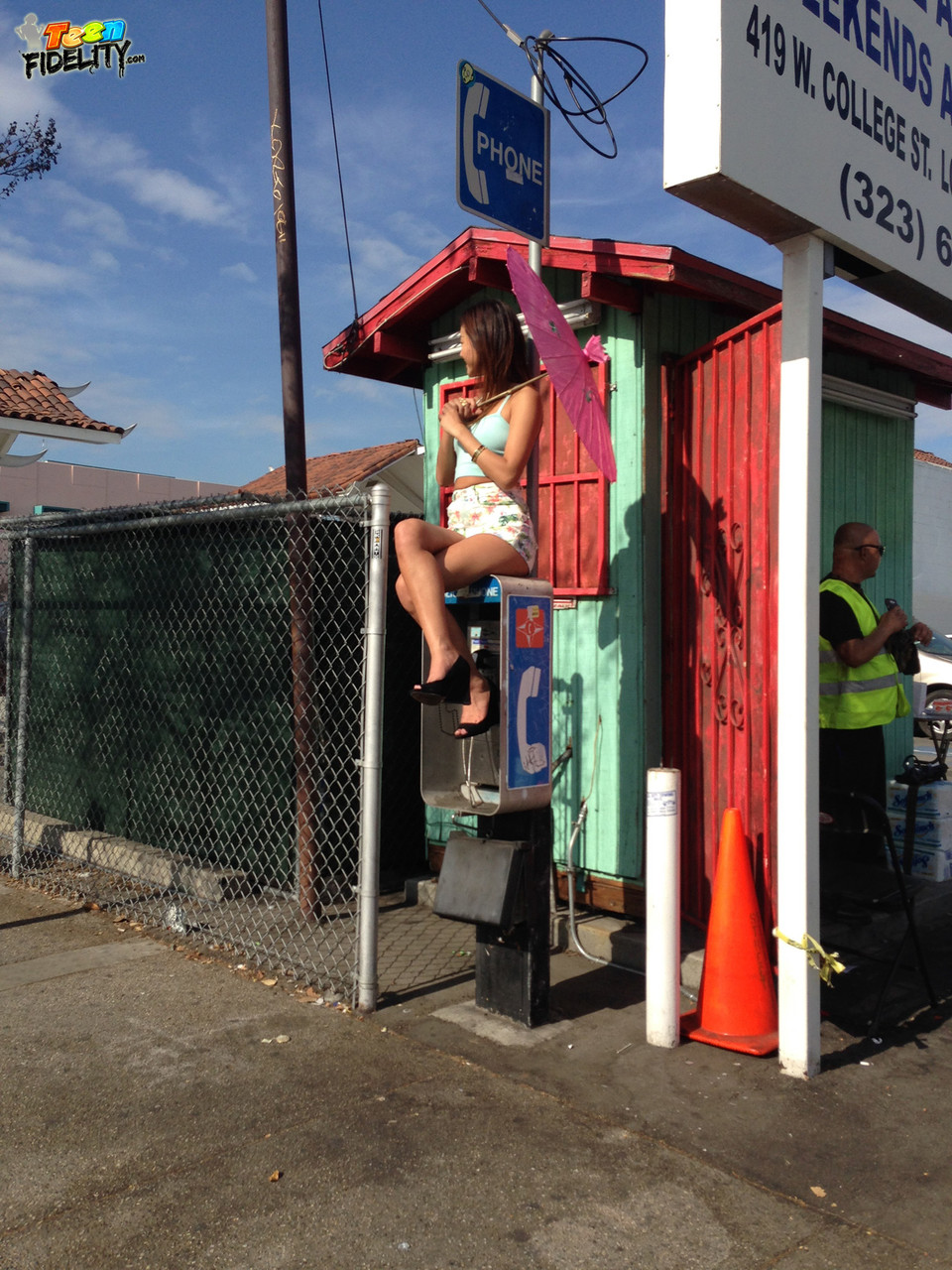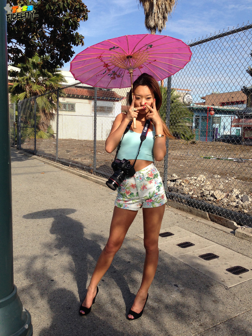 スレンダーなアジアの美女アリナ・リーが屋外で人前で着衣と裸体をモデルに - 写真 6 / 16
