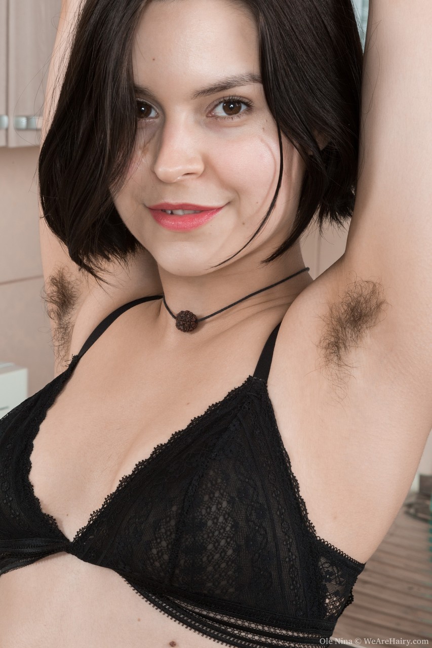 オレ・ニナ:毛深いブルネットがキッチンで裸になり自分を楽しむ - ギャラリー情報