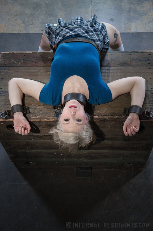無力な金髪女子高生エラ・ノヴァがダンジョンBDSMで縛られ、ティーンソックスを引き伸ばされ、衣服越しのマンコを弄られ、引き締まった尻と脚を晒し、足をキスされ、可愛いティーンのボンデージ降伏。