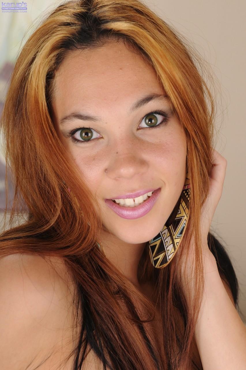 アマチュア赤毛の女の子、チェリーノワールは、ジーンズから靴下まで脱ぎ、美しい顔、大きな胸と完璧な白い尻を、裸のポーズで誘惑的に見せる。