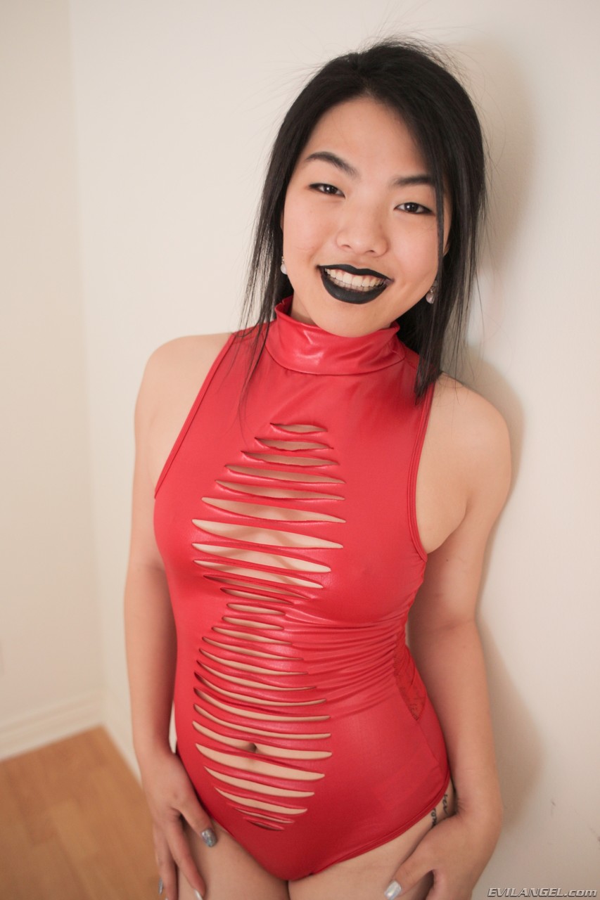アジアの美女ナリ・パークが赤い服を脱ぎ、黒い毛を広げる - ギャラリー情報
