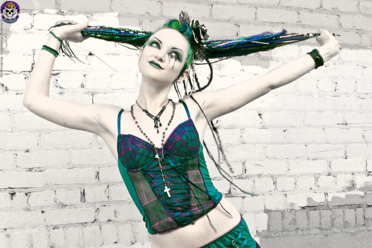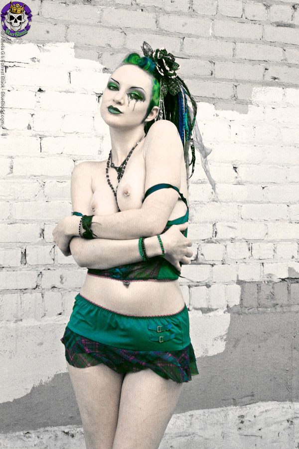 AltギャルScar 13がレンガの壁に胸を隠す - ギャラリー情報